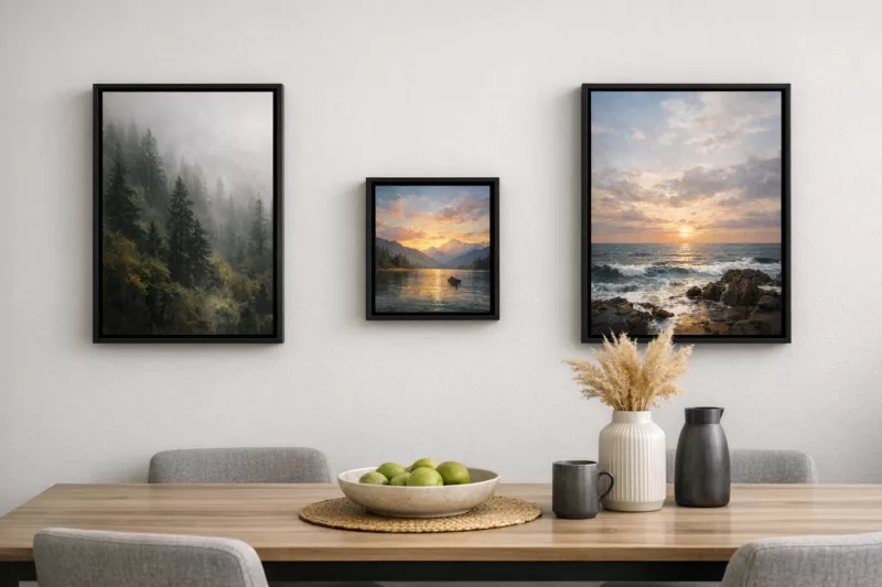 Before ordering, confirm you’re shopping by artwork size (11 x 14) rather than outside frame dimensions, and check that your canvas or panel depth is compatible with the frame’s capacity so the piece seats evenly. Orientation is flexible—11x14 can hang portrait or landscape—so you can keep the same frame style across a series. If you want to compare finishes and profiles, you can start designing a floater frame style to match your artwork and space.