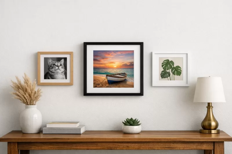 Square formats naturally feel centered and intentional, especially for portraits, travel shots, wedding and baby photos, pet portraits, and minimalist typography or graphic art. The right frame profile and finish can either keep the focus on the image with a simple, modern edge or add a more decorative outline that turns a small piece into a focal point.