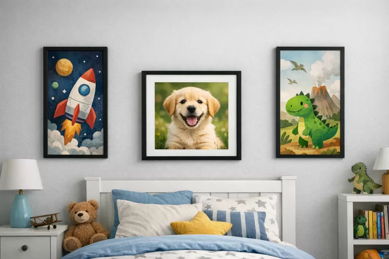Square frames are forgiving because there’s no “wrong” orientation, but they still need stable hardware for a crisp, level hang—especially when you’re aligning multiple pieces in a grid. If you want hardware handled for you, consider Hanging Hardware Install On Wood Frame.