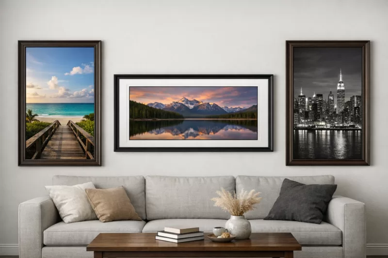 This size is a go-to when your artwork measures exactly 20 x 40 inches and you want an exact-fit presentation with no mat for a full-bleed look. It’s also a smart choice when you want a more gallery-style finish by pairing the frame with a mat to visually separate slightly smaller panoramic prints—common matting pairings include 18x36, 16x36, and 12x36 (with a mat window cut to the art’s exact dimensions). For modern wide prints, some people also use a 20x40 frame to mat a 20x30 with a larger top/bottom reveal.