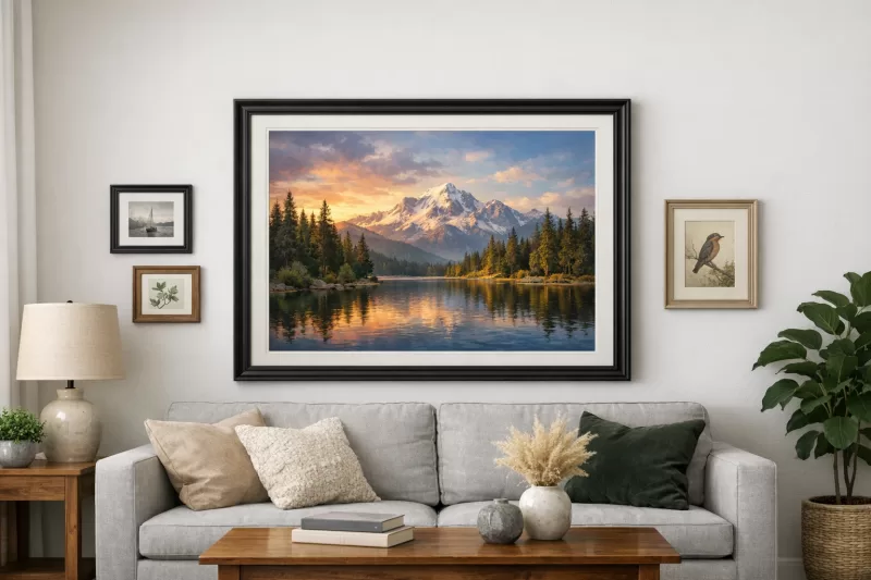 Because 30 x 40 has a big visual footprint, frame profile and wall impact matter. A sturdier, proportionate look can help the piece feel anchored above a sofa, bed, or console table, while a slimmer look can keep modern posters feeling crisp and minimal. For help getting the size right, see how to measure artwork.