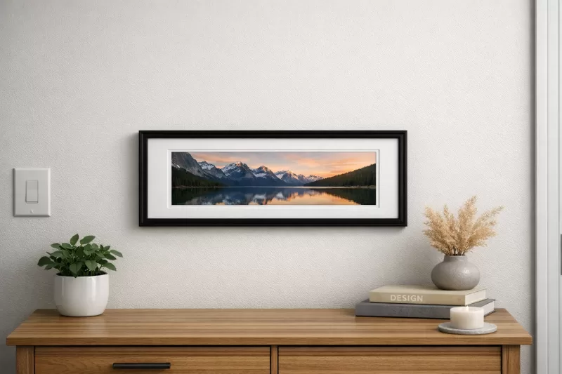 If your artwork isn’t exactly 4x12, consider a 4x12 frame with a mat cut to your art size. Matting can center a smaller panoramic/narrow print and add border space so the piece feels more substantial and intentional on the wall.