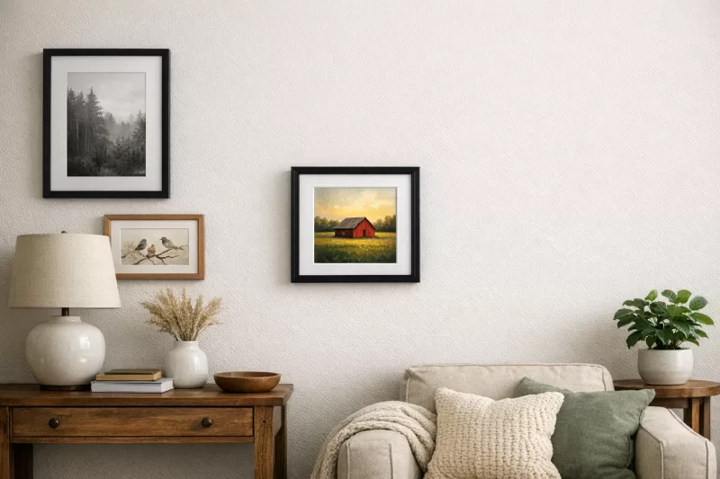 Before you buy, confirm you’re shopping by the artwork opening size (8x8) rather than the outside dimensions, and decide how you want to display it: wall hanging, tabletop, or both. If you’re building a cohesive gallery wall, keep the frame profile and finish consistent across multiple 8x8 pieces for a clean, repeating rhythm. For help double-checking your measurements, see how to measure artwork for framing.