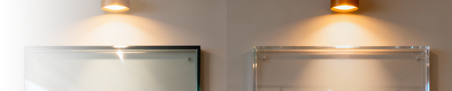 - Using clear acrylic in a bright room instead of non-glare acrylic.