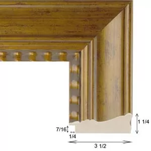 Limited stock. Dark gold picture frame with black undertones, beaded lip is separated by a dark gray wash.