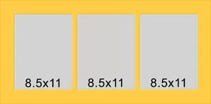 3 hole collage mat with all windows at 8 1/4 x 10 3/4. This will fit a regular sheets of typing paper or a pictures that are 8 1/2 x 11.
