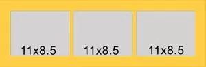 3 hole collage mat with all windows at 10 3/4 x 8 1/4. This will fit a regular sheets of typing paper or a pictures that are 11 x 8 1/2.