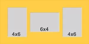 3 hole collage mat with 2 window holes at 3 3/4 x 5 3/4 and one at 5 3/4 x 3 3/4. This will fit pictures that are 4 x 6.