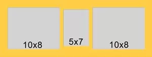 3 hole collage mat with 2 window holes at 9 3/4 x 7 3/4 and one at 4 3/4 x 6 3/4. This will fit pictures that are 10 x 8 and 5 x 7.