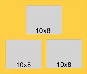 3 hole collage mat with all windows at 9 3/4 x 7 3/4. This will fit pictures that are 10 x 8.