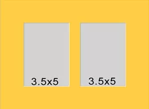 2 hole collage mat with both windows at 3 1/4 x 7 3/4. This will fit pictures that are 3 1/2 x 5.