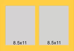 2 hole collage mat with both windows at 8 1/4 x 10 3/4. This will fit a standard sheet of typing paper or picture that are 8 1/2 x 11.