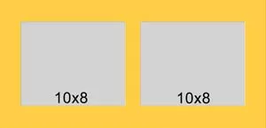 2 hole collage mat with both windows at 9 3/4 x 7 3/4. This will fit pictures that are 10 x 8.