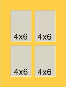 4 hole collage mat with all windows at 3 3/4 x 5 3/4. This will fit pictures that are 4 x 6.
