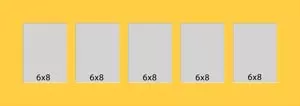 5 hole mat with all windows at 5 3/4x7 3/4. This will fit pictures that are 6x8.