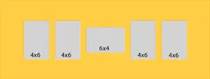 5 hole collage mat with four windows at 3 3/4 x 5 3/4 and one at 5 3/4 x 3 3/4. This will fit pictures that are 4 x 6.