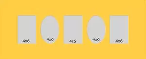 5 hole collage mat with all windows at 3 3/4 x 5 3/4. This will fit pictures that are 4 x 6.