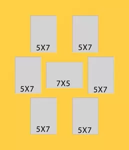 7 hole collage mat with si x windows at 4 3/4 x 6 3/4 and one at 6 3/4 x 4 3/4. This will fit pictures that are 5 x 7.