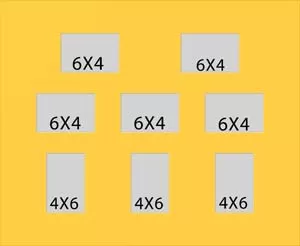 8 hole collage mat with five windows at 5 3/4 x 3 3/4 and three at 3 3/4 x 5 3/4. This will fit pictures that are 4 x 6.