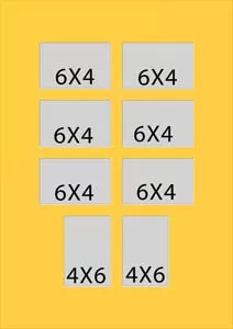 8 hole collage mat with si x windows at 5 3/4 x 3 3/4 and two at 3 3/4 x 5 3/4. This will fit pictures that are 4 x 6.