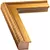V666 is an elegant pre-modern picture frame moulding with a warm gold finish. The inner area of the profile surface has a 1”wide flat space, adjoining the outer area which protrudes upward in a cylindrical fashion that accentuates the visual weight and thickness of the moulding. The warm gold is a mid-tone, as the finish is made to look aged and distressed, with small intentional markings for effect. The gold finish sits on a gesso base, which has been applied to a wood substrate.