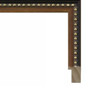 This sophisticated western-style wood picture frame features a gold bead on the face of a dark brown profile that is lighter brown along the inner lip. The profile width is 1 1/8”, and the rabbet depth is 1 3/16”, making this frame ideal for original oil paintings on ¾” stretched canvas.