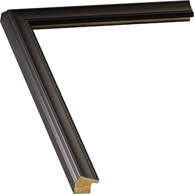 This scooped black picture frame features a black bead pattern across the inner lip of the profile.