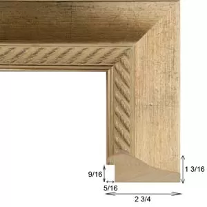 Limited stock, moulding has been discontinued. Pale silver gold picture frame with antiquing, heavy roped lip, pale beige wash.