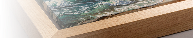 Ideal floating wood frame for art 1-5/8" thick or less. This natural, softwood, floater frame is an ideal picture framing choice when it comes to floating cradled panel art, or canvas artwork that has been stretched around a stretcher bar or strainer.